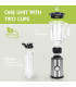 Em destaque: liquidificadora com quatro lâminas em aço inox; capacidade útil de 0,6 litro; copo de plástico graduado amovível; pega superior; potência de 350 W; possibilidade de lavagem na máquina de lavar loiça (exceto a base); uma velocidade + função pulse; recipiente portátil; tampa para armazenamento.